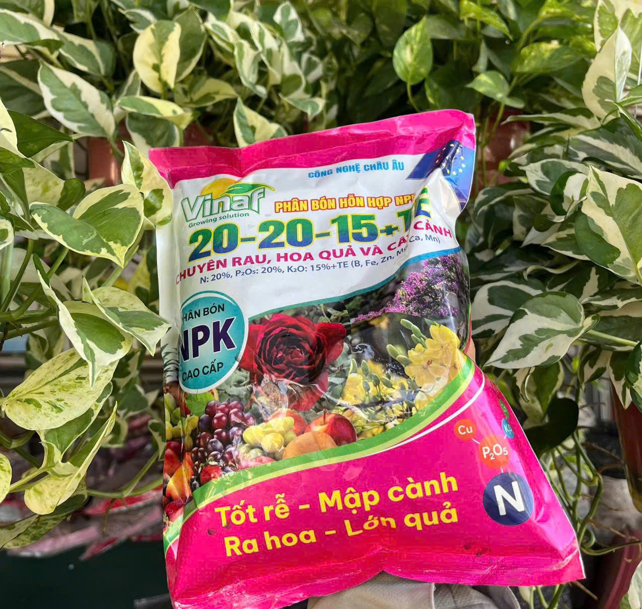 • Thành phần dinh dưỡng chính: NPK 20-20-15 cân đối, bổ sung trung vi lượng.